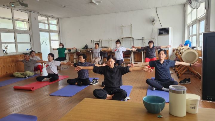 선경아리랑2 동작이 몸 자세를 바로 잡아주고 운동이 많이 된다고 열심히 따라 하셨읍니다 점점 활력무를 접하는 부분이 진지해 지는것 같아 감사한 마음 입니다
