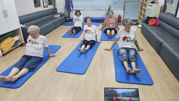 비가 많이 내려서 어른신들이 집에서 못 나오시고 몇 분만 와서 운동했습니다.
