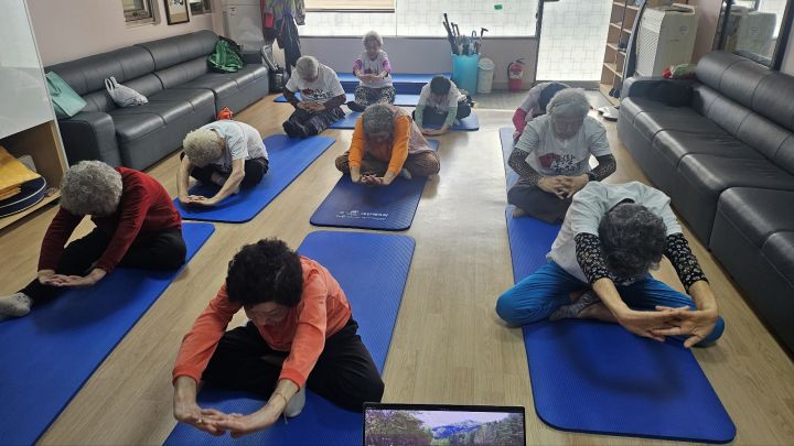 기본동작하고 몸풀고 어른신들이 한분한분 처음보다 많이 좋아지다고 감사한다고 하시고 너무 좋아하시는 모습이 보기좋아요