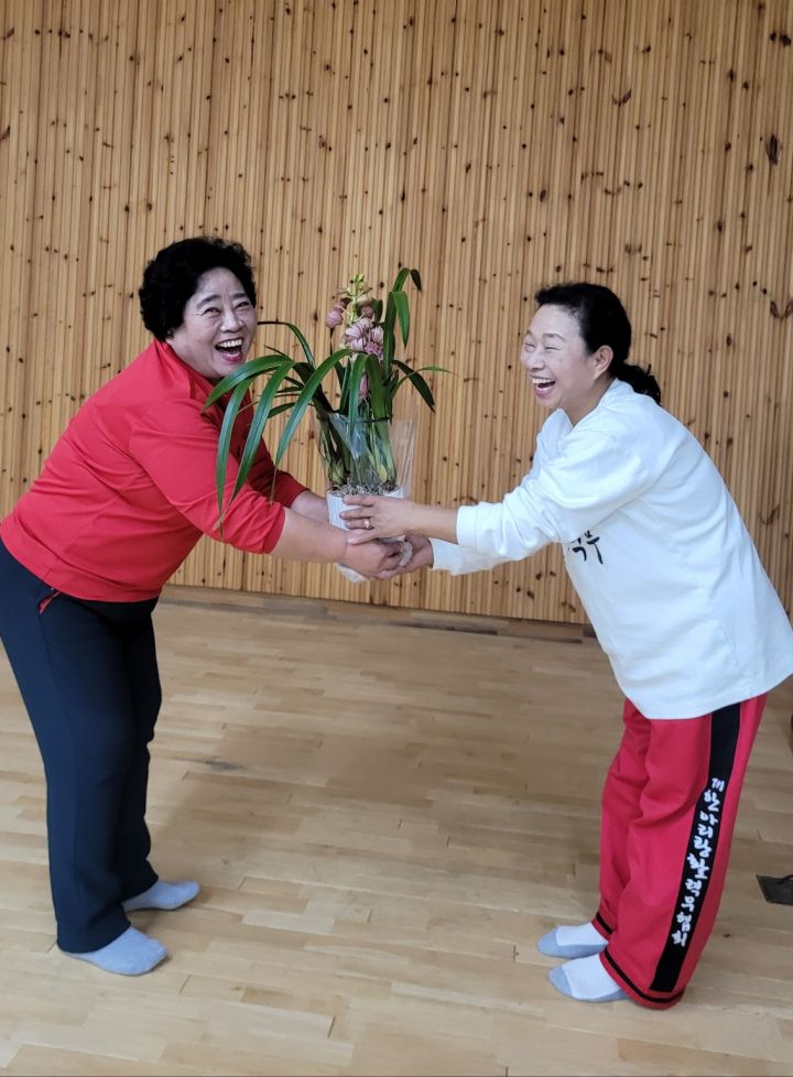 오늘 마지막 수업하고 방학에 들어갑니다 복지관 수강생이 준비한 간식과 이쁜 양란꽃도 선물받았네요